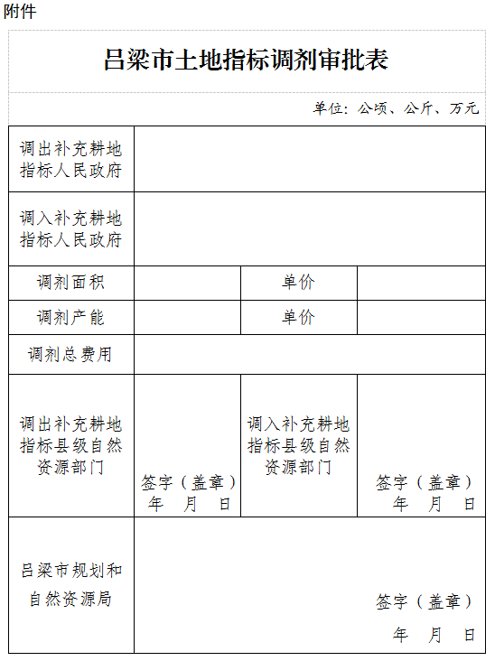 关于印发吕梁市土地指标调剂办法(试行)的通知