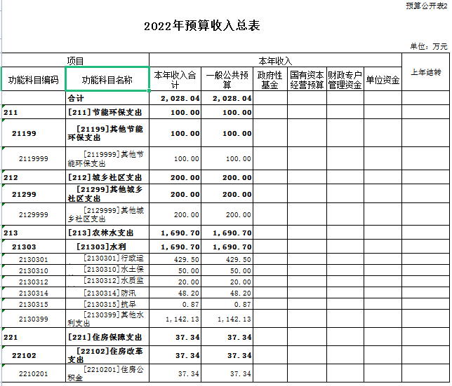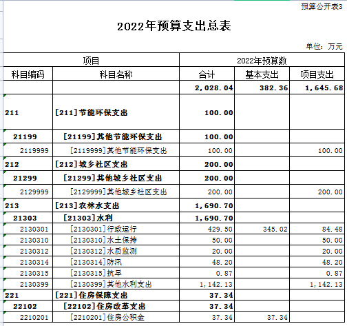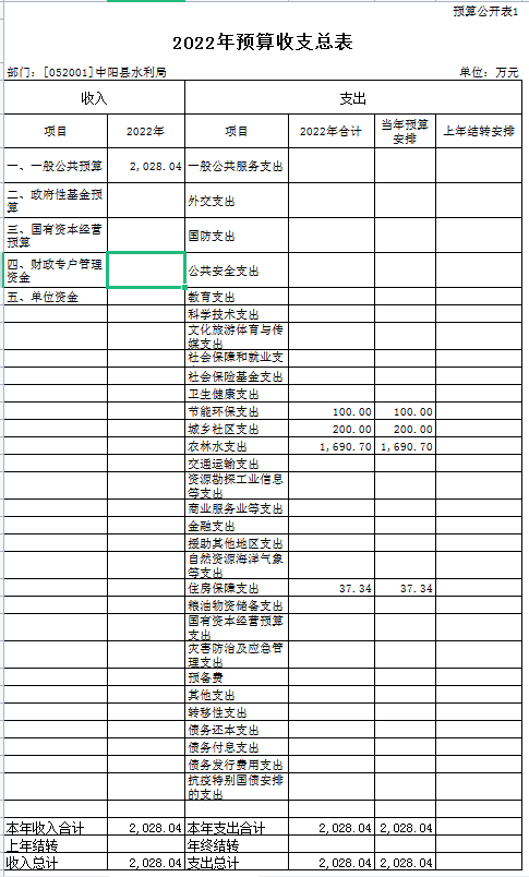 一、中阳县水利局部门2022年预算收支总表