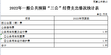 2022年一般公共预算安排的“三公”经费预算数为1.8万元,2021一般公共预算安排的“三公”经费预算数1.8万元,与上年比无增减变化;其中: