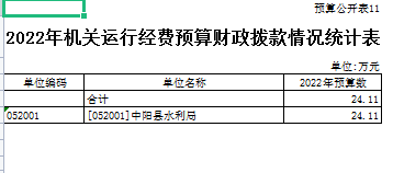 十一、中阳县水利局部门2022年机关运行经费预算财政拨款情况表