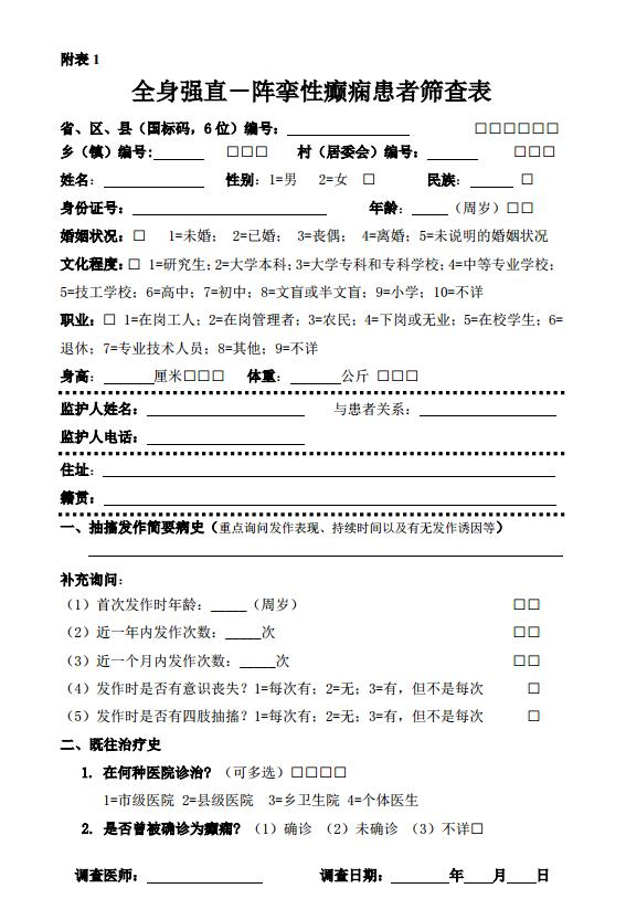 附件:1.全身强直一阵挛性癫痫患者筛查表