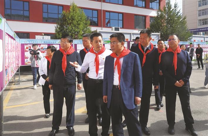 图为市委书记孙大军等领导在城东小学参观“学习党的二十大 唱响青春主旋律”主题书画展。记者 王益炜 摄