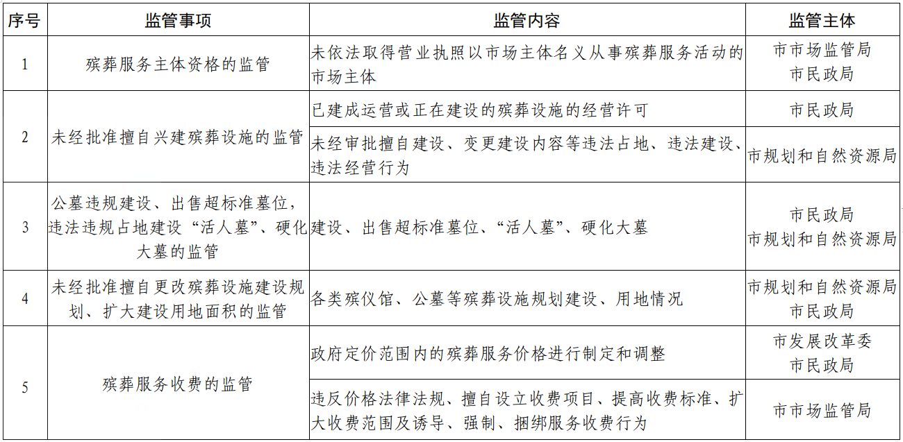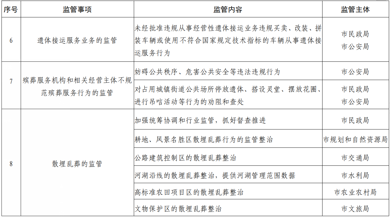 吕梁市殡葬领域跨部门综合监管重点事项清单