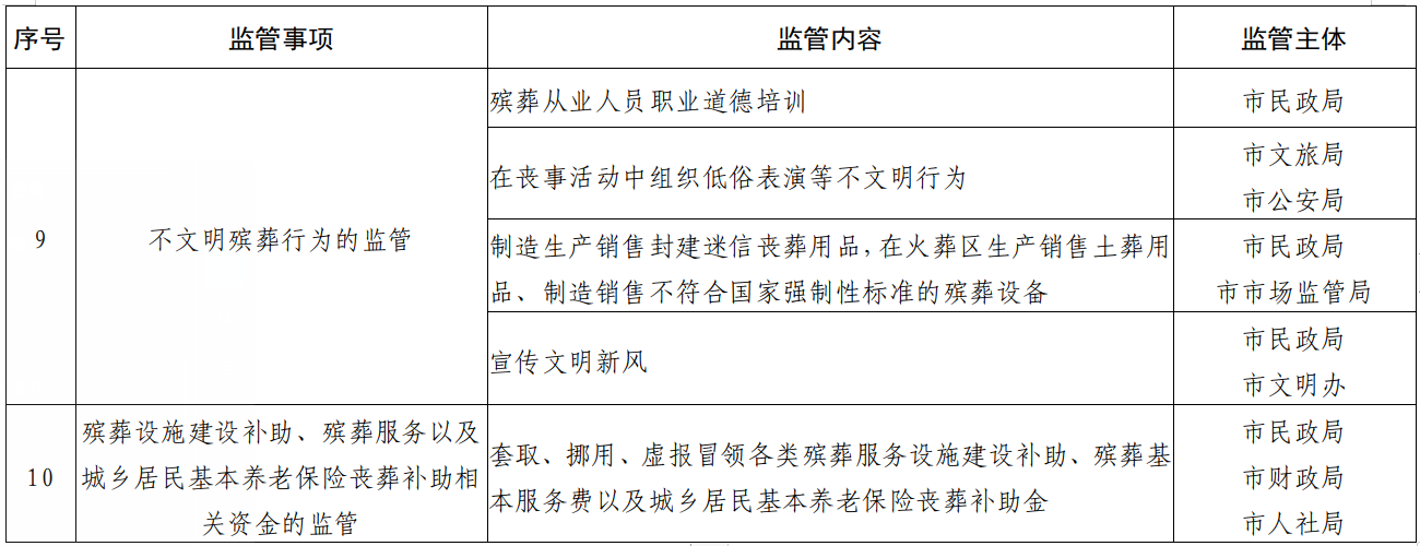 (十)殡葬设施建设补助、殡葬服务以及城乡居民基本养老保险丧葬补助相关资金的监管