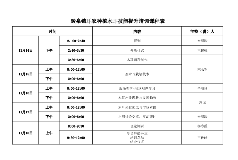 附件1:2025年暖泉镇耳农木耳种植能力提升培训课程表