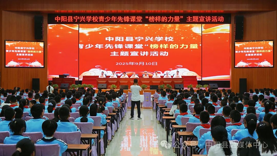 9月10日下午,由共青团中阳县委、中阳县少工委主办的“青少年先锋课堂—榜样的力量”主题宣讲活动在中阳县宁兴学校报告厅隆重举行。团县委负责人、宁兴学校领导班子及全校师生代表400余人共同参与,聆听了一堂生动而深刻的青春励志课。