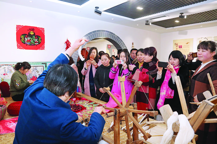 2月22日,中阳县非物质文化遗产生活馆正式开馆。该馆旨在通过陈设、展示、培训等手段,“活态”地展示剪纸、刺绣等丰富的非遗资源,为广大群众提供体验、学习、传承的平台,使非遗融入大众的生活,促进非物质文化遗产的保护。(张旭峰 摄)